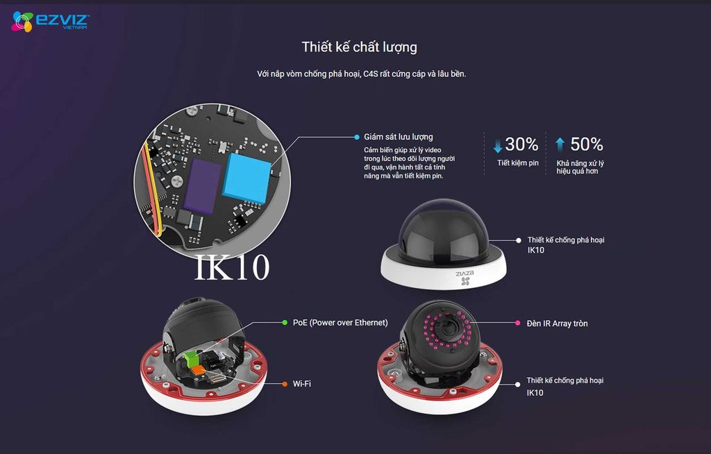 • Wi-Fi với EZVIZ smart-config, Ethernet hỗ trợ PoE