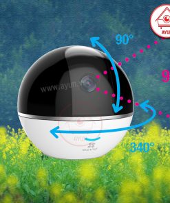– Ống kính 4mm@ F2.2, góc nhìn 95°, góc xoay ngang 340°, góc xoay dọc 90°.